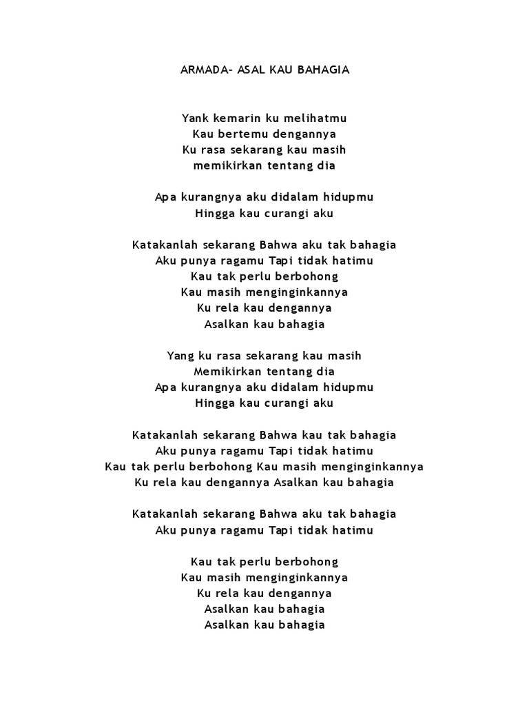 Lirik Lagu Armada Asalkan Kau Bahagia Pdf